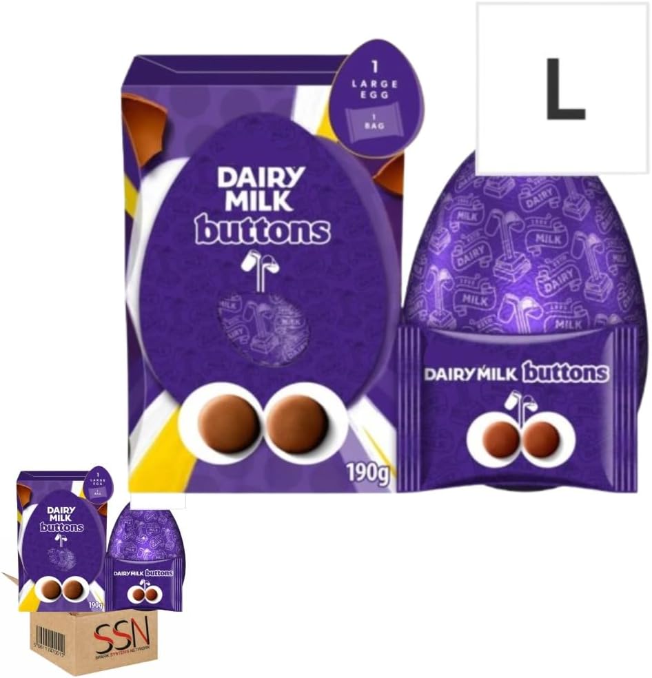 Dairy Milk Buttons Chocolate Easter Egg 190g by SSN Spark Systems Network Milk chocolate egg shell made with Dairy Milk, Includes a bag of Dairy Milk Buttons, The iconic Easter taste, Suitable for vegetarians