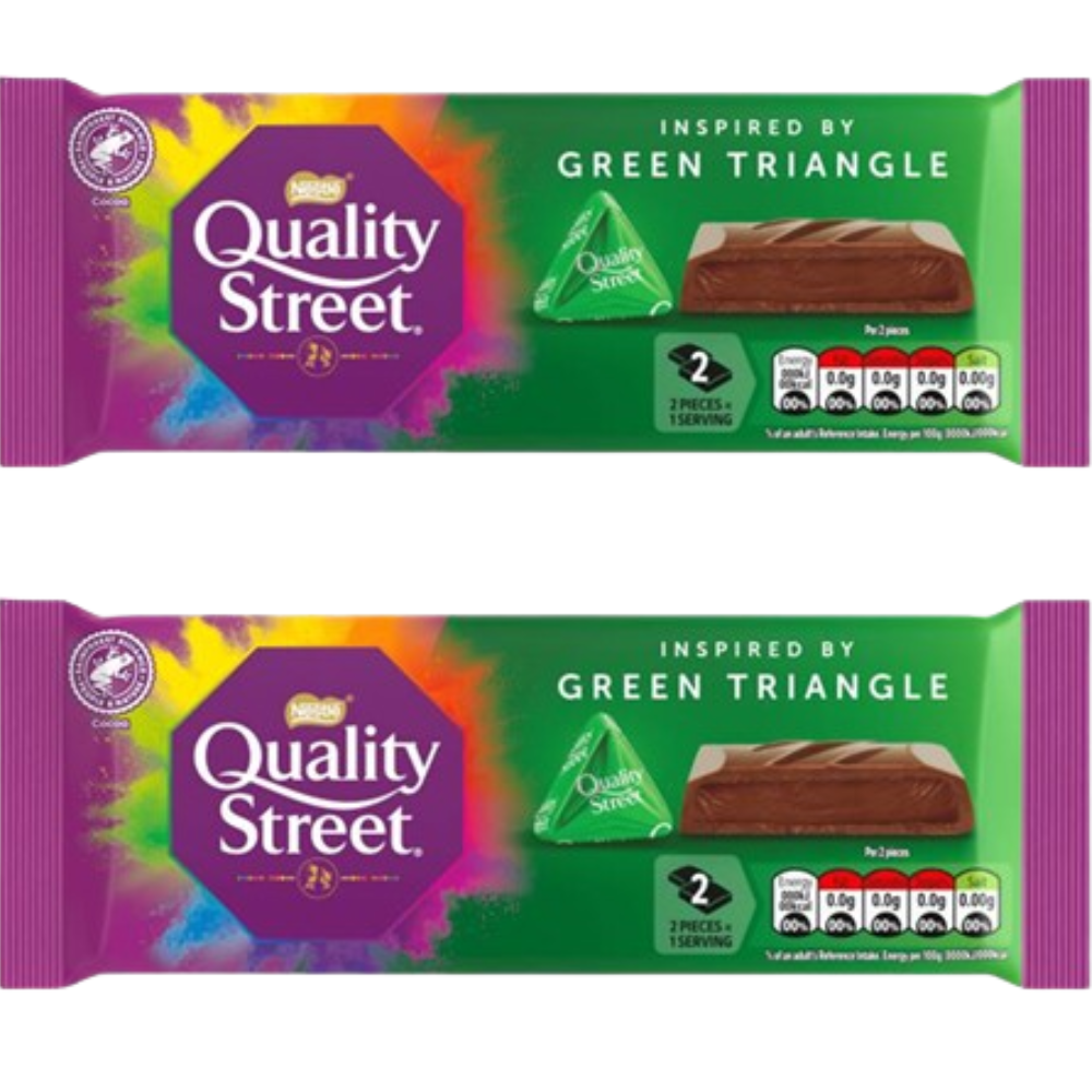 Quality Street Green Triangle Milk Chocolate Bar with Hazelnut Praline 84g By SSN Spark Systems Network (Pack of 2)